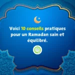 Un Ramadan équilibré repose sur une bonne alimentation, une hydratation suffisante, un sommeil de qualité et une gestion saine de l’énergie. En appliquant ces 10 conseils, vous pourrez vivre pleinement ce mois tout en prenant soin de votre sante