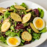 Préparez une vinaigrette maison avec de l’huile d’olive, du jus de citron, une pointe de moutarde, et un soupçon de miel. Cette sauce équilibrera les saveurs de votre salade.